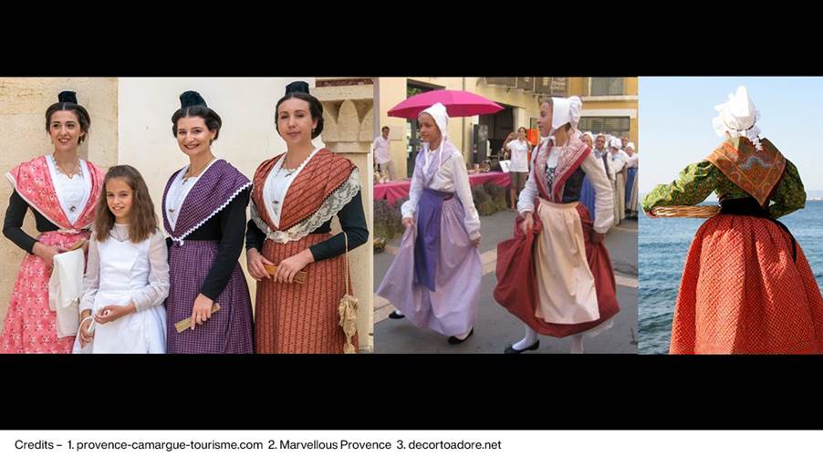 Though modern Provence is far more urban and eclectic, these traditions continue to weave through festivals, weddings, and cultural gatherings. The dress remains a vivid reminder that heritage isn’t something static; it’s something colourful to be worn with pride.